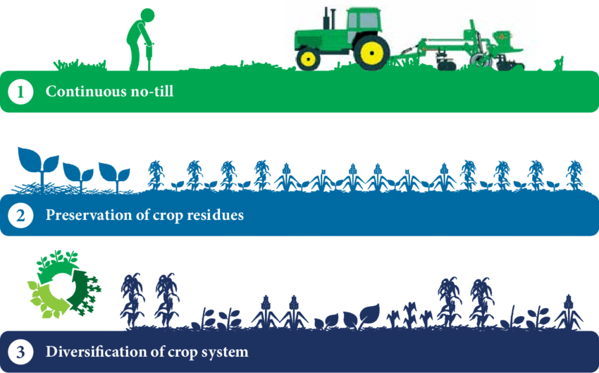 - No-till farming is a key practice in conservation agriculture, where farmers do not disturb the soil by plowing
