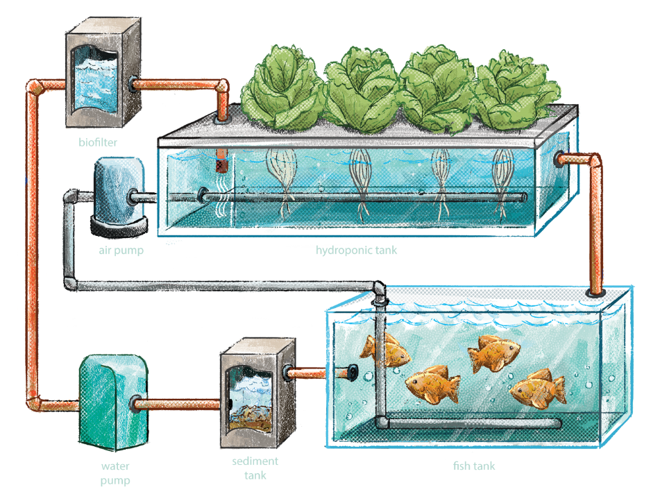 Aquaponics is a closed-loop farming system that combines aquaculture (raising fish) with hydroponics (growing plants without soil). In this symbiotic setup:
